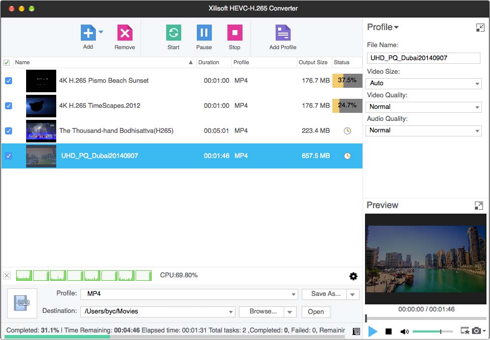 Moreover, settings such as modifying the bit rate, frame rate, channels are available. There's also a built-in movie player so you can preview before converting. Another quirk is that you can take snapshots from the movie and save them as pictures.