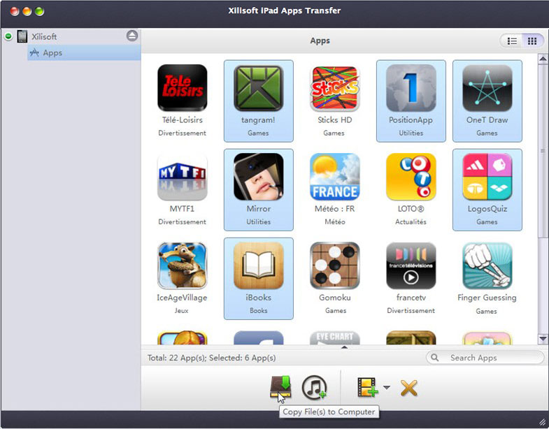 Xilisoft iPad Apps Transfer is a smart and easy to use tool for you to manage your iPad apps and app documents. With this outstanding software, you can conveniently transfer and backup iPad apps to iTunes or computer hard disk for future use. You can also delete the apps you don't need or move the apps from computer back to iPad.