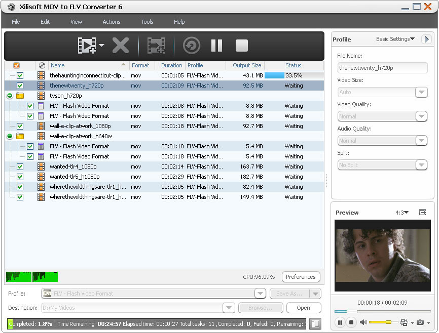 Xilisoft MOV to FLV Converter makes it possible to upload QuickTime MOV video files to YouTube or other video sharing site. It can convert MOV to FLV and also convert QT to FLV video file. The MOV to FLV video conversion can be finished in batch-processing and multithreading mode at super fast speeds. Also you can create FLV video from photos.
