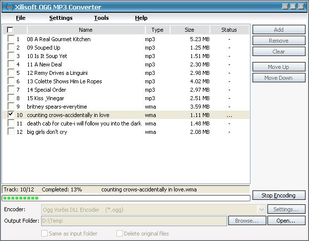 Xilisoft OGG MP3 Converter proves professional to convert OGG to MP3 as OGG to MP3 converter and to convert MP3 to OGG as MP3 to OGG converter. It also supports converting between popular audio formats such as WMA and WAV. In addition, extracting audio from your beloved video is also available.