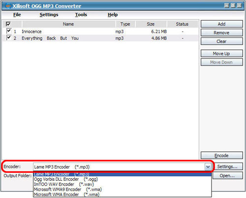 Xilisoft OGG MP3 Converter supports converting MP3 to OGG and OGG to MP3. It can also convert between WAV and WMA. The following guide will show you how to convert between audio formats.